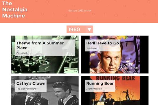 Esse é o objetivo do The Nostalgia Machine, um site que reúne as músicas mais tops de cada ano. O arquivo do site vai até o ano de 1960 e é barbada de pesquisar: só selecionar o período que "a máquina" vai lhe mostrar os melhores vídeos da época.