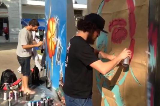 Pela praça, está o trabalho dos grafiteiros Paulo Pincel e Mariê Balbinot, de Joinville; Wagner Wagz, de Florianópolis; Plim, de Porto Alegre e Felipe Reis, do Rio de Janeiro. A coordenação da mostra de grafite é de Luis Flávio Trampo, de Porto Alegre (RS).