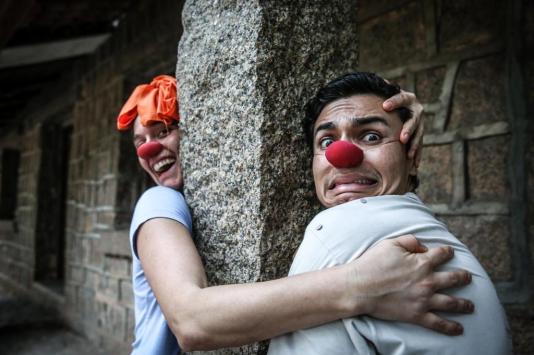 Há quatro anos a companhia catarinense fundada em 2001 realiza o projeto (A)Gentes do Riso junto aos pacientes do Hospital Infantil Joana de Gusmão, na Capital. Esse mesmo trabalho está sendo apresentado nos hospitais árabes. Mesmo sem saber o idioma, os atores confiam numa comunicação que é universal e inerente ao ser humano: o sorriso. Claro, tem truque de mágica, música e o jogo clássico de palhaços.