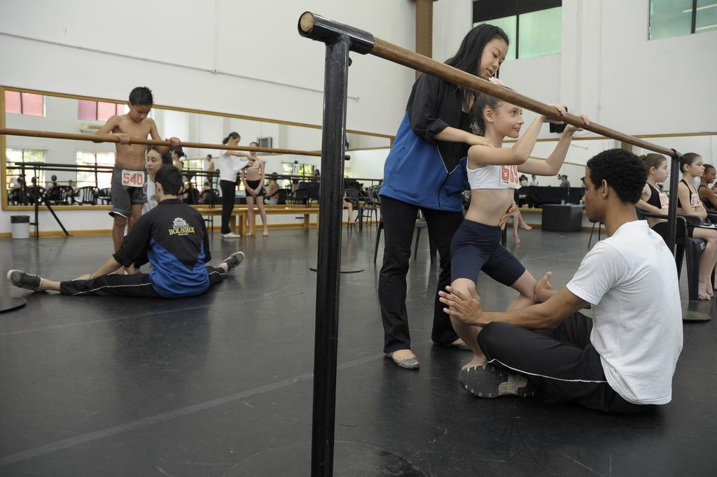 Ela ainda alerta que conhecer as condições físicas evita lesões futuras. Por isso, Leonardo e Gabriel ficaram de pé sobre um pequeno palco, enquanto tinham a postura observada. Qualquer desvio era anotado. Na avaliação articular e muscular fisioterapeutas ajudavam na realização dos movimentos. Neste quesito, sim, alguns perdem a chance. Para um bailarino que segue o método Vaganova é indispensável ter o movimento circular completo na articulação entre pernas e quadril.