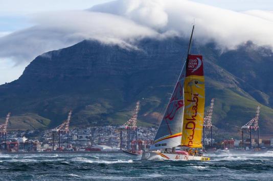 Durante o trajeto ainda dentro da baía da Cidade do Cabo, as mudanças de vento e de liderança foram constantes. Ao passar pela última baliza antes de seguir a prova até Abu Dhabi, o Team SCA comandava a disputa, seguido de perto pelo Team Alvimedica e pelo Team Vestas Wind.