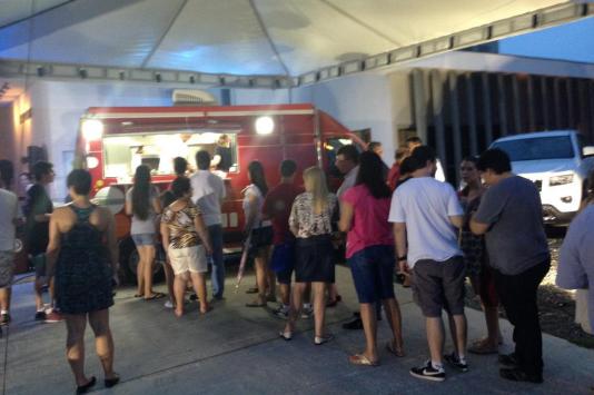 O sol nem tinha ido embora completamente e já se formavam filas em frente ao Food Truck, ontem à noite, na Central de Decorados do Cosmopolitan, na rua Duque de Caxias, centro de Joinville.