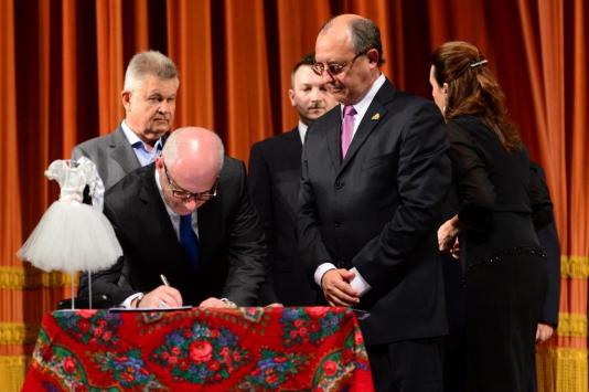 Na ocasião, o vice-diretor do Teatro Bolshoi, Anton Getman, que veio ao Brasil especialmente para o evento, realizou a assinatura do documento junto com o presidente da escola, Valdir Steglich, o diretor geral, Pavel Kazarian, e as demais autoridades presentes.