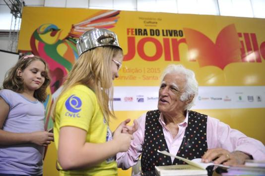 Ídolo dos pequenos leitores, Ziraldo foi o homenageado da Feira do Livro de Joinville, que deu largada na 12ª programação nesta sexta-feira. As cem senhas distribuídas para quem queria receber o autógrafo do cartunista e escritor foram poucas para atender a tantos fãs. Entre eles, estava Beatriz Peres de Oliveira, de 12 anos. A menina, que tem tumor cerebral e já escreveu dois livros, veio com os pais de São Francisco do Sul para ver o autor.
