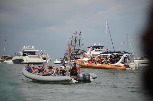 A costa de Itajaí ficou repleta de embarcações. O público se dividiu em lanchas, escunas, botes e até caiaques e pranchas de sup _ usados para prática de stand up paddle _ para poder acompanhar à In-Port Race.