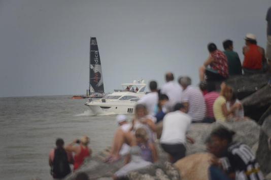 Público foi até o molhe de Navegantes ver a partida dos veleiros rumo a Newport