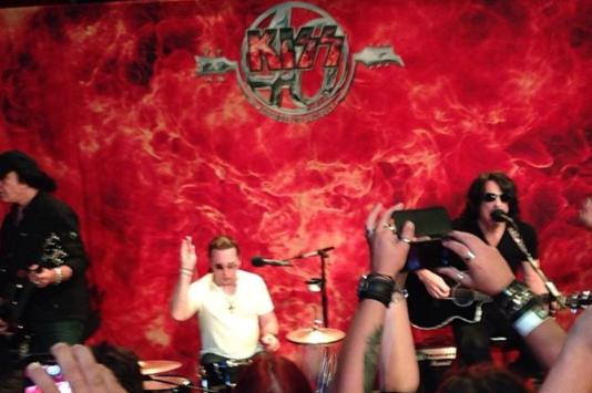 Os caras do Kiss sem maquiagem, em um palquinho de nada, fazendo um set acústico a menos de um metro de você. Demais! Cada um dos cerca de 90 fãs que participaram do meet & greet (literalmente, encontrar e cumprimentar) com a banda pagou R$ 2,6 mil para estar ali - e ninguém se arrependeu. A promoção foi realizada na tarde desta segunda na Pacha, casa noturna contígua ao Devassa On Stage, onde mais tarde o grupo faria seu show convencional abrindo a turnê brasileira em Florianopolis.