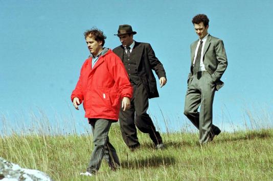 Em 2004, Fontes (vermelho) filmou em Sata Catarina novas cenas de "Chatô" com Marcos Ricca (de chapéu) e Gabriel Braga