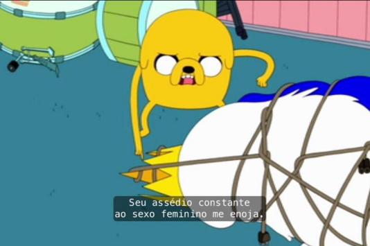 Um dos desenhos que mais aborda essas questões é Hora de Aventura. No episódio I Remember You, o Rei Gelado pede ajuda a Marcelline para compor uma música que atraia princesas – apesar de a personagem negar e se mostrar distante, o rei insiste e invade sua casa. Uma frase dita pelo personagem principal Jake chama a atenção:
