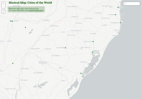 Além das mais de mil listas de reprodução específicas de cidades e, que refletem as preferências musicais únicas de cada área, o serviço criou o mapa baseado na música que é "distintiva" de cada área - o que significa as músicas que são ouvidas frequentemente em cidades específicas, mas que não são frequentemente ouvidas em outras. O mapa não coloca no ranking músicas duplicadas. Por exemplo: se o U2 é o mais ouvido em Porto Alegre e Nova York, ele não vai pro ranking.