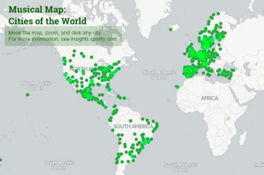 Spotify lançou um guia visual interativo de como as pessoas ouvem música em diferentes cidades ao redor do mundo