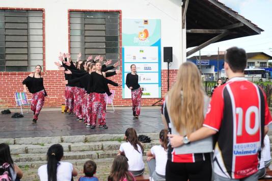 O grupo Muleka, de Rio Azul, no Paraná, abriu as apresentações do palco alternativo da Estação da Memória, na zona Sul de Joinville, neste sábado à tarde, uma das atrações da programação do Festival de Dança de Joinville.