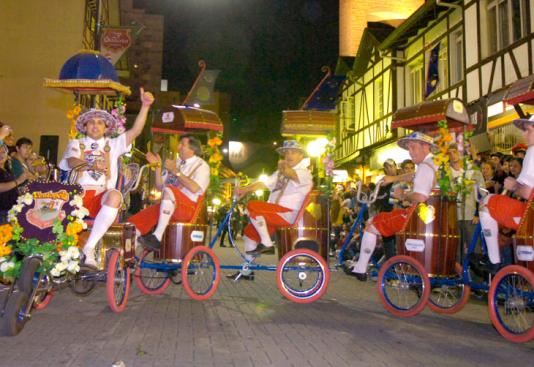 A Oktoberfest 2008 começou às 19h30min desta quinta-feira com um desfile na Rua XV de novembro, em Blumenau. Carros alegóricos cruzaram uma cidade cheia de festeiros. O cordão de isolamento não foi páreo para os que esticavam copos vazios em direção ao carros com barris de chope. Alguns até conseguiam a proeza de encher um caneco.