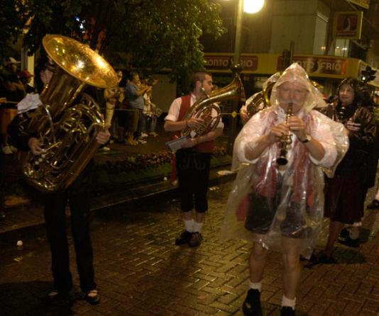 Desde o início da Oktoberfest, blumenauenses e turistas enfrentam dias de chuva, que causaram o cancelamento do desfile de sábado e interditaram o Biergarten terça-feira.