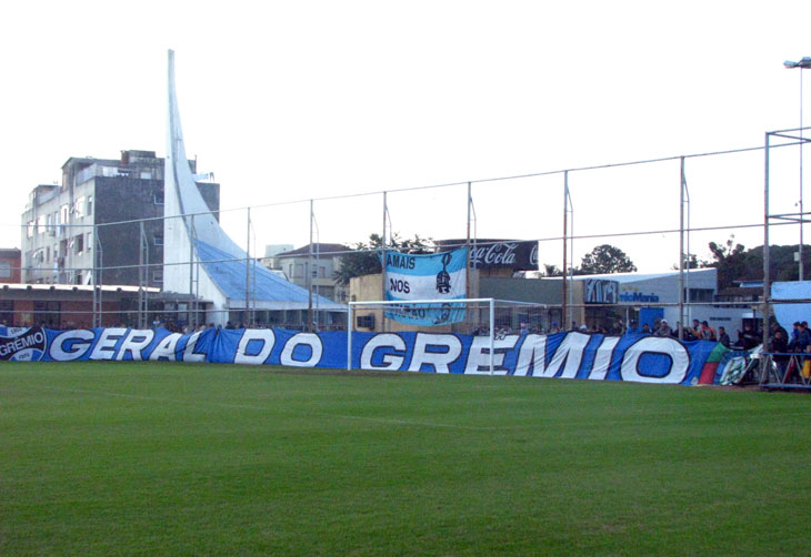 Integrantes da Geral do Grêmio acompanharam o treino desta tarde