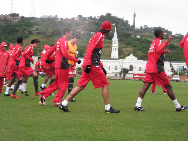 Jogadores do Inter durante aquecimento que antecedeu o coletivo