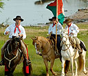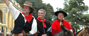 Artistas, mulheres e cavaleiros uruguaios participam do Desfile Temático