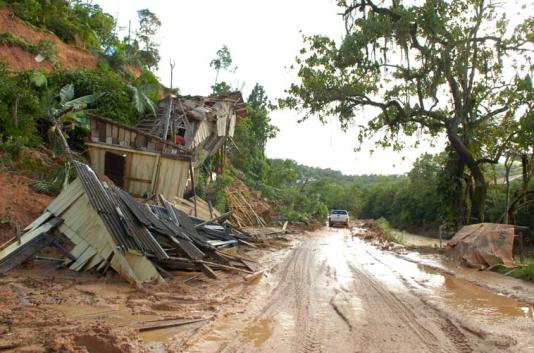 Deslizamentos de terra foram registrados em várias áreas da cidade em novembro de 2008