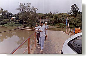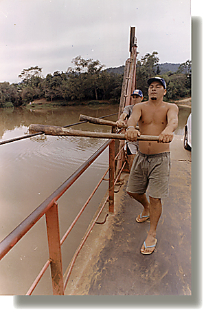 presença de veículos, os passageiros sao levados de barco até a margem oposta por