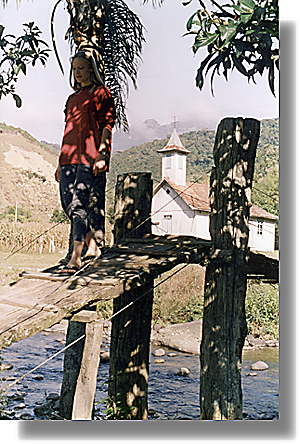 diariamente a ponte de arame construída pelo bisavô há quase 100 anos. O construtor