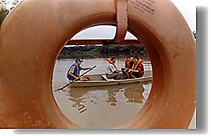 levar a balsa de um lado a outro do rio. O trabalho, contam, é estafante. Como que para