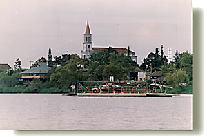 consideradas grandes, como Blumenau, o uso de barcos rudimentares para atravessar o rio é