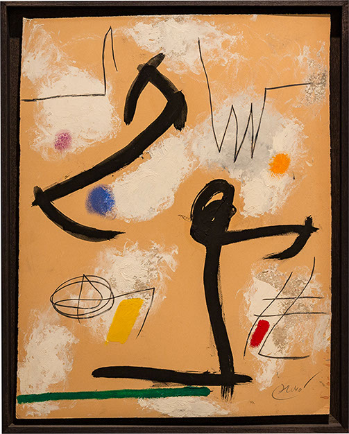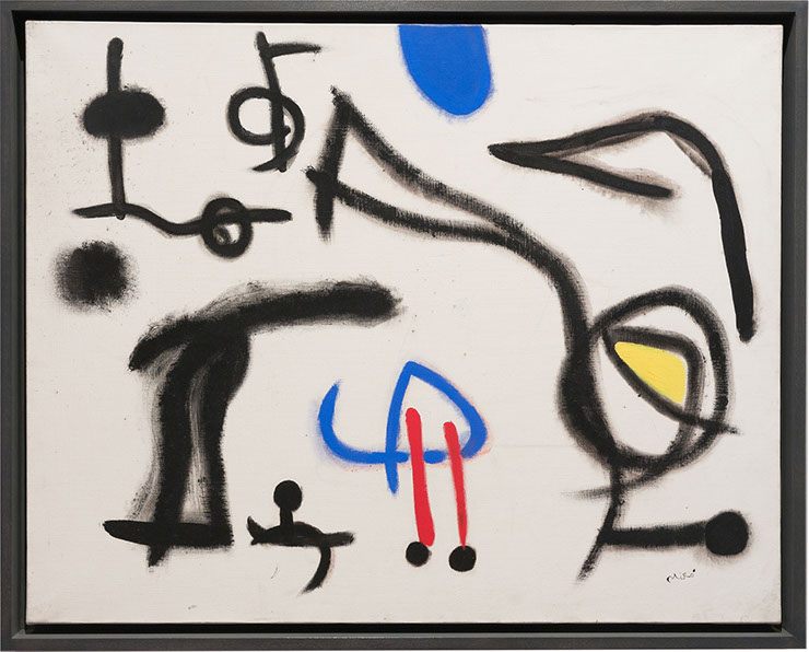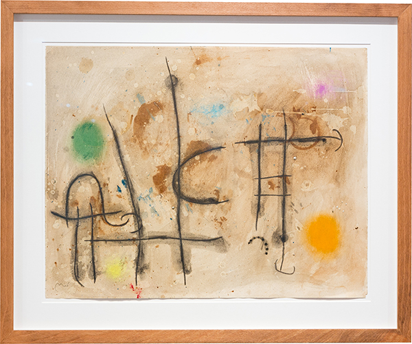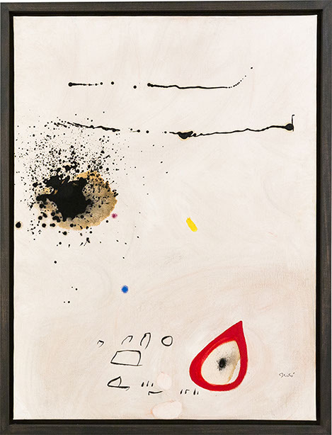 Sua obra apresenta a matéria antes de tudo, porém, por razões que o mistério de sua prática instauram, a matéria em Miró ganha leveza e nos lembra de transcendência. O modo como fez aparecer a marca na tela liga sua obra à tradição da pintura ocidental e recoloca as possibilidades desse meio para a atualidade.