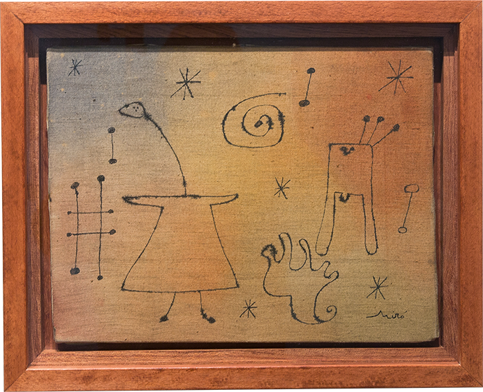 A ligação com a mística do oriente é outro aspecto importante na vida e obra de Miró e aparente em muitas obras da exposição no Masc. Seja com giz de cera, tinta, bronze, papel, tela ou madeira, ele traduziu o cosmos em símbolos que se repetiram em seus trabalhos: estrela, lua, mulher, pássaros. É como se enxergasse com o terceiro olho, o olhar noturno, do mundo dos sonhos, um olhar que vê além da beleza explícita no figurativo. Ele acreditava na beleza que só a alma percebe e a expressava por meio de formas orgânicas e construções geométricas.