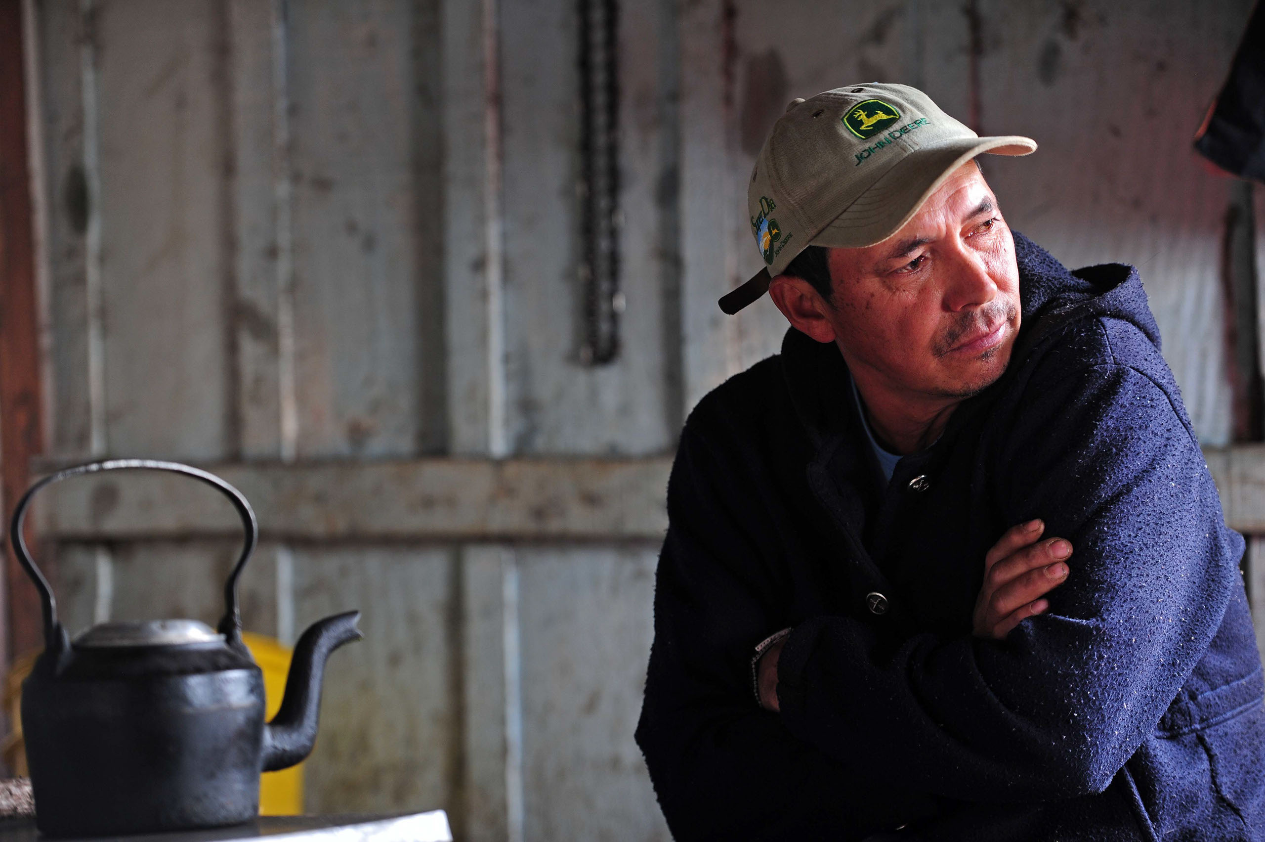 15 anos, é de pouca conversa. O adolescente ajuda o pai nas atividades mais pesadas da lavoura. Corta lenha e cava terra.