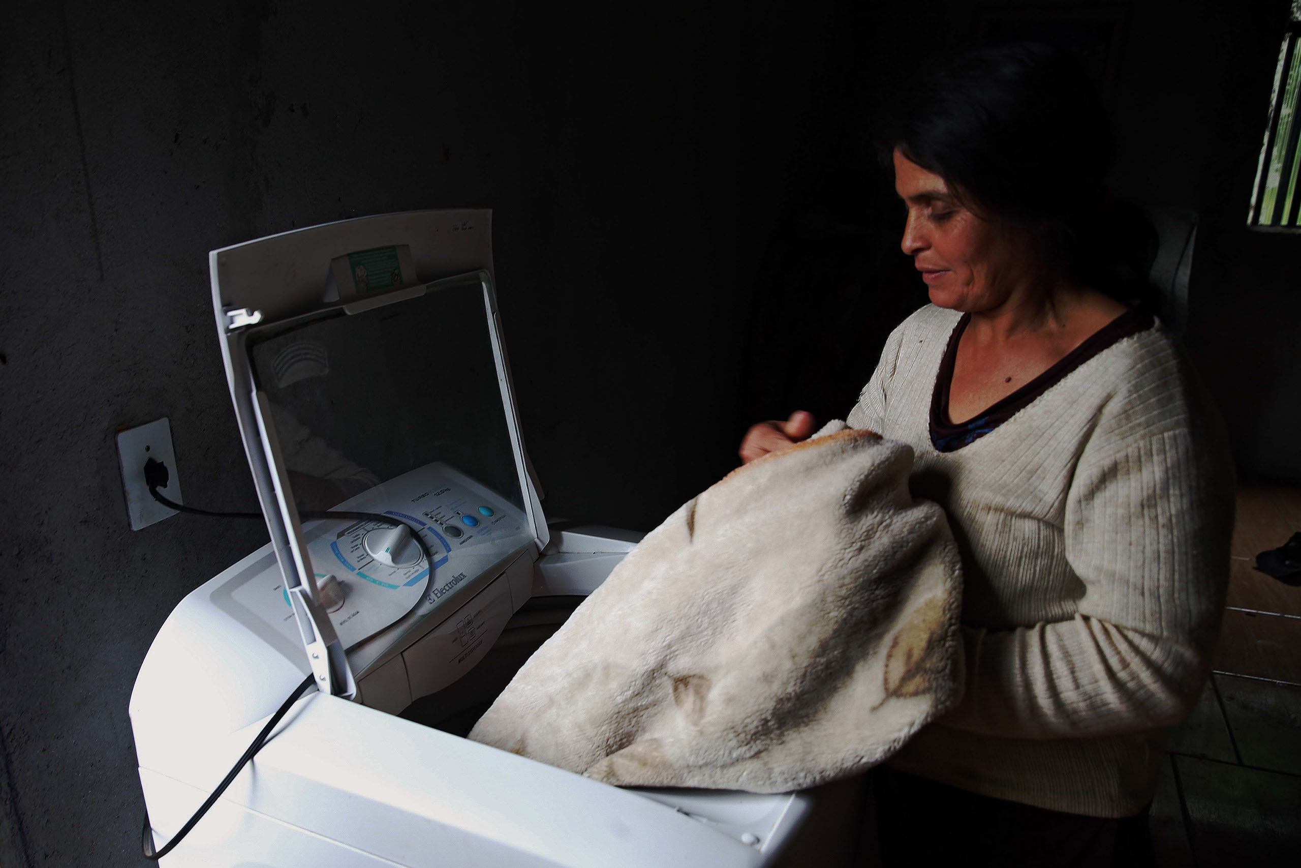 – Olha o que comprei para a gente – diz apontando para a máquina de lavar roupas, 12 quilos, coberta por um lençol na sala da casa nova para não pegar pó.