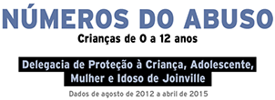 Aviolência sexual contra criança é mais comum do que se imagina. Está acima de classe social ou nível de instrução. Um levantamento exclusivo feito pela Delegacia de Proteção à Criança, Adolescente, Mulher e Idoso de Joinville para o jornal "A Notícia", constatou que 576 vítimas deste tipo de abuso, com idades de zero a 12 anos, foram atendidas entre agosto de 2012 e abril de 2015. Isso significa que houve uma vítima a cada dois dias na região. Os dados levam em consideração as cinco cidades atendidas pela delegacia (Joinville, Araquari, São Francisco do Sul,