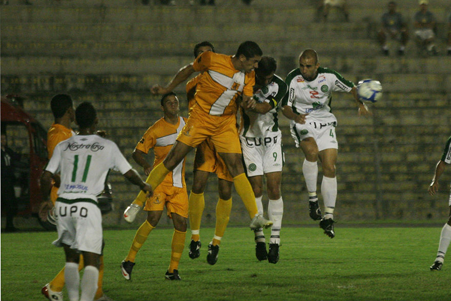 Disputa de bola durante Chapecoense 0 x 0 Guarani, em Campinas, que classificou a equipe do Oeste