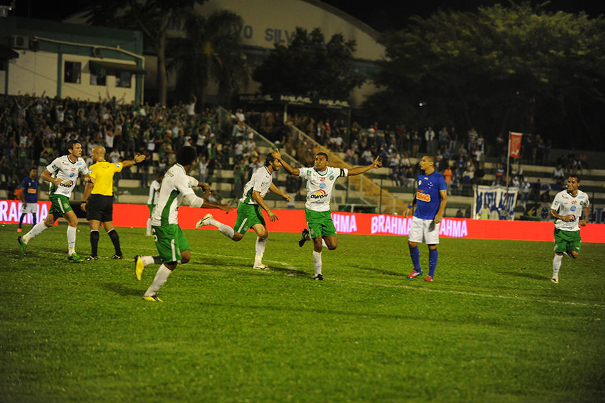 Na fase seguinte, empatou na Arena Condá por 1 a 1 com o Cruzeiro; na foto, Souza comemora o gol verde