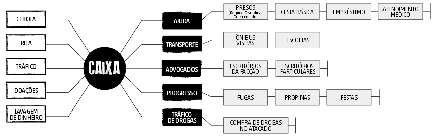 As quantias são revertidas tanto para ajudar os membros presos (advogados e visitas de familiares) como para comprar armas e drogas: