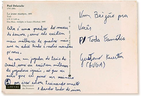 Ainda criança, Guga enviou um cartão para a família falando dos objetivos do futuro.