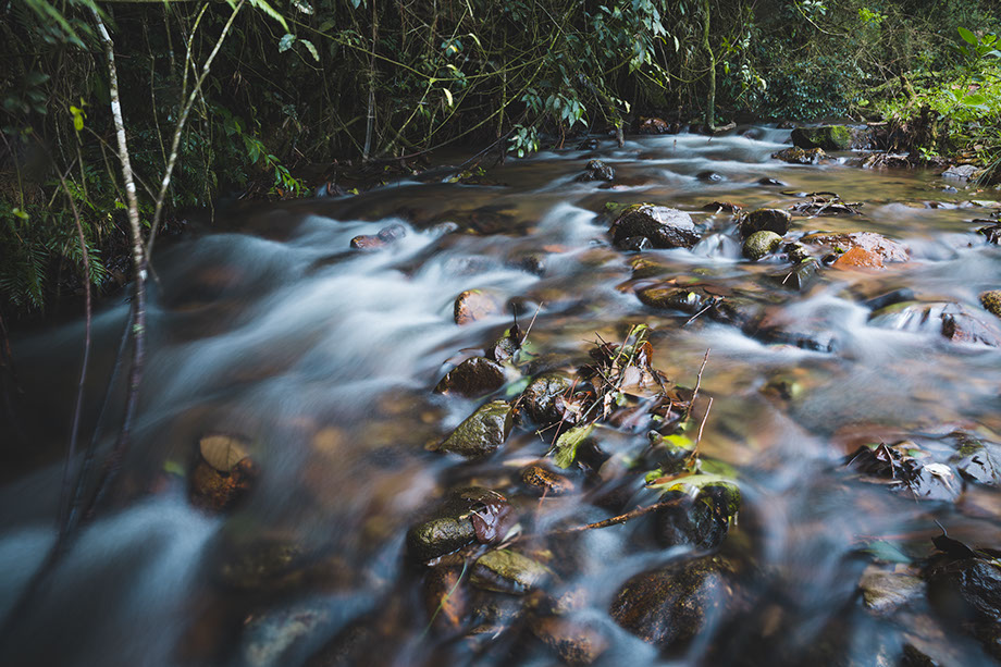 Leito do Rio Cubatão do Sul, próximo à nascente, no município de Águas Mornas