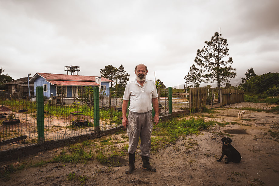 Casa do aposentado Olívio Vieira Filho na Praia do Sonho, em Palhoça, faz fronteira com o Parque do Tabuleiro