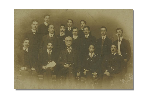 Em São Paulo, onde cursaram a faculdade de Direito, os irmãos Konder e Nereu Ramos se destacam. Integrando a diretoria do Centro Acadêmico, foram fotografados com o político e escritor Joaquim Nabuco (ao centro).
