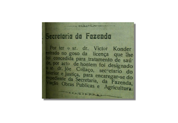 Deputado estadual pela região de Blumenau, Victor Konder passou uma pequena temporada em Lages, terra da tradicional família Ramos, em janeiro de 1920. Ficou na Serra por cerca de 10 dias, segundo relatos da imprensa. Antes de voltar ao Vale do Itajaí, fez uma parada em Florianópolis, onde deixou a notícia: estava noivo.