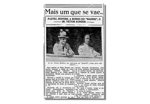 Se foi a política, a boa vida de solteiro ou a saúde de Victor que levaram ao fim da relação com Ruth, é difícil responder. Certo é que em setembro de 1924, ele pede licença da Secretaria da Fazenda e do Conselho de Blumenau. Embarca às pressas para a Europa, onde vai passar por um tratamento de saúde. Ficaria cinco meses fora do Brasil.