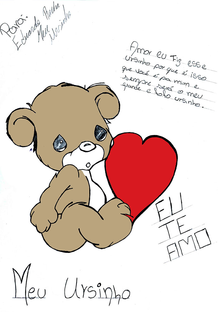 Danielly, 15 anos, fez cartinha para mostrar seu carinho pelo namorado, Eduardo, que não é da escola.