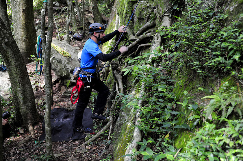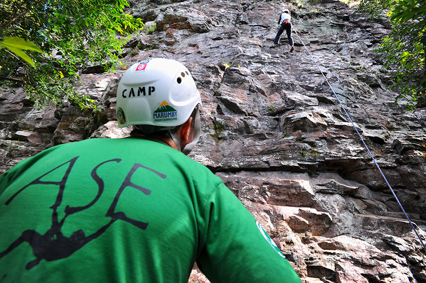 Wendel Soares guiando a via de escalada