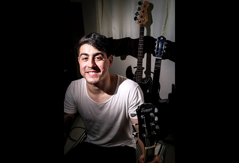 gosto pela música começou cedo para André Machado da Silva, 22, o músico Kennedy, do bairro Capoeiras, Florianópolis. Com vasto repertório, o jovem, que desde criança sonhava em ser artista, faz rap, toca baixo, guitarra e violão, e produz músicas, batalhando para conquistar cada vez mais espaço. Foram nos salões da Igreja Presbiteriana, que frequentava quando criança, que teve o primeiro contato com os instrumentos. Começou com o violão, depois veio o baixo e a guitarra.