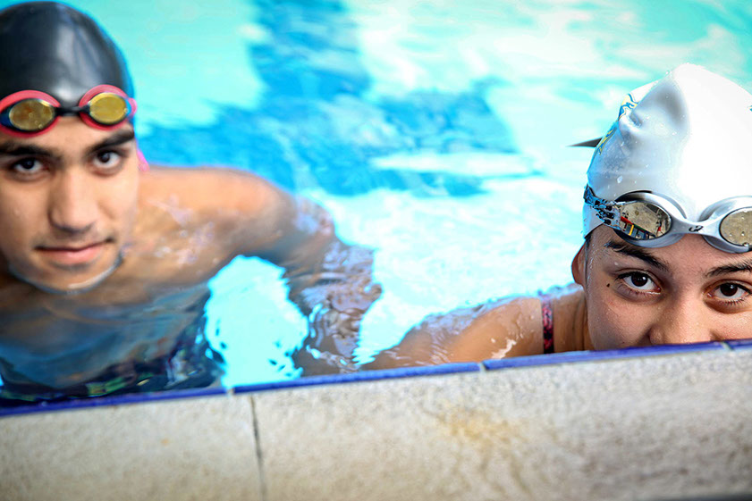 om braçadas precisas, batendo forte as pernas e flutuando na água, os irmãos Pedro Duke Lino de Araújo, 17 anos, e Lanai Clara Araújo, 14, da Fortaleza da Barra da Lagoa, em Florianópolis, vão conquistando seu espaço como atletas de natação. A dupla faz parte da equipe do Lira Tênis Clube, onde treinam seis vezes por semana. Além da piscina, eles contam com o mar como quintal de casa, onde aproveitam para treinar em contato com a natureza sempre que têm tempo livre.