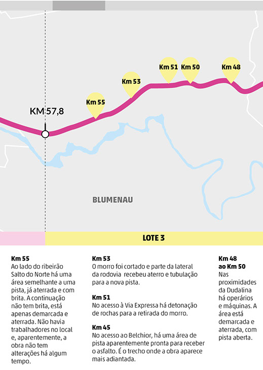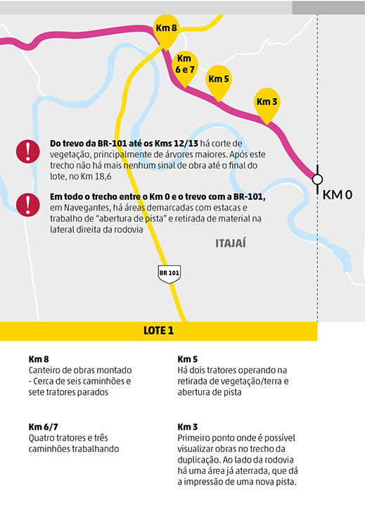 Confira o que está sendo feito em cada trecho da rodovia. As empresas vencedoras da licitação têm prazo de quatro anos a contar da assinatura da ordem de serviço para entregar as pistas duplicadas