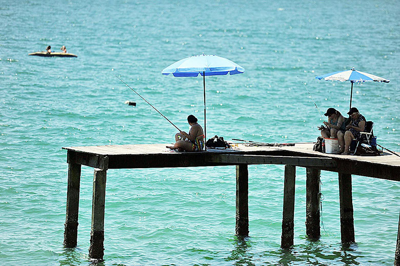 A praia é sossegada, de família mesmo. Várias pessoas vem pra cá acampar e a água é muito limpa, então também vem um pessoal para praticar mergulho. Já no período da noite chegam os pescadores atrás dos peixes-espada, eles usam boias luminosas e o cenário fica lindo”.