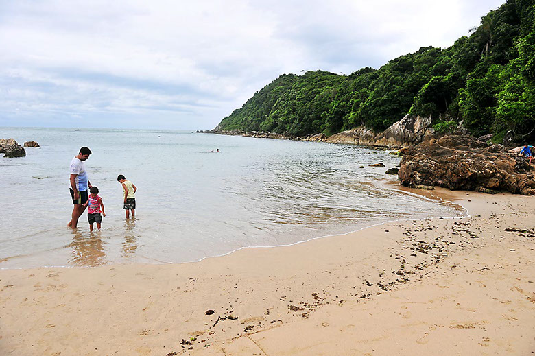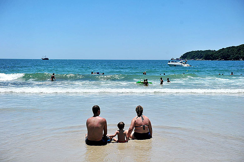 Diferenciais: A praia é extremamente limpa e a água é cristalina, como mostram as fotos. É frequentada majoritariamente por famílias. Nesta época ela fica mais movimentada, mas nada que se compare às multidões que invadem as areias de Porto Belo.