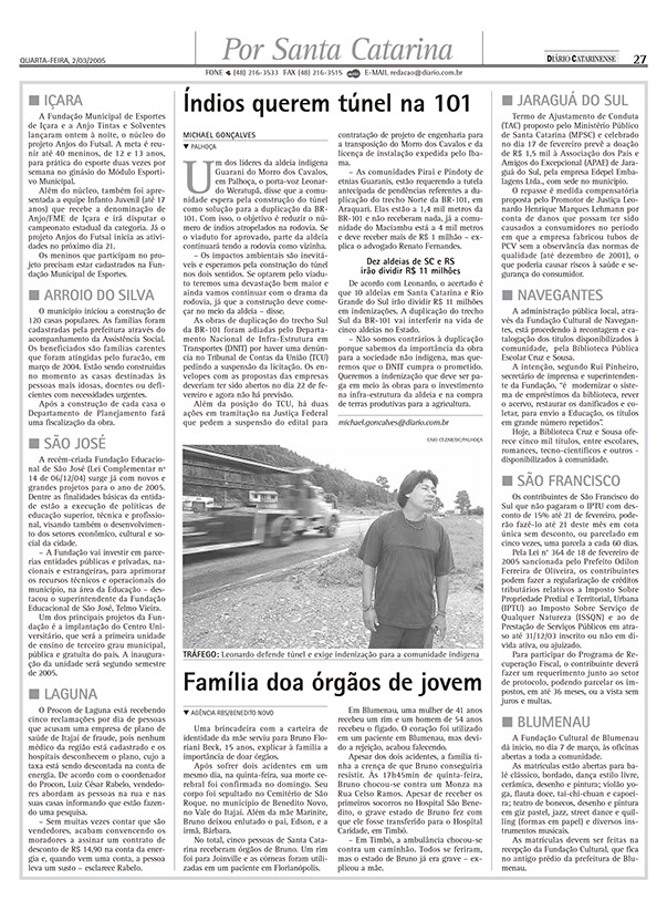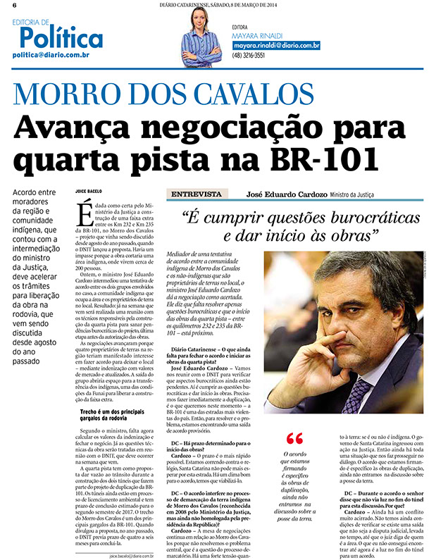 Confira algumas matérias publicadas pelo jornal sobre o impasse do Morro dos Cavalos desde 2002