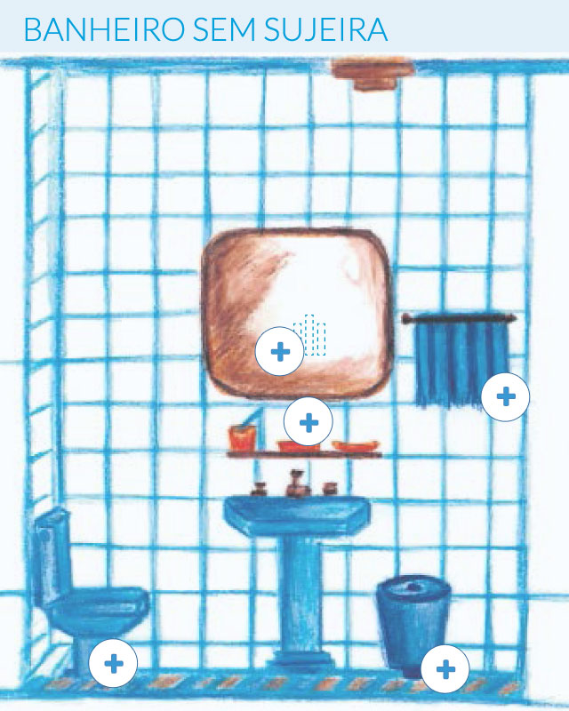 A limpeza do vaso sanitário deve ser feita duas vezes por semana, pelo menos, com água sanitária. As pastilhas perfumadas, colocadas na parte interna do vaso, ajudam a desinfetar o local, mas não substituem a higienização com água sanitária.