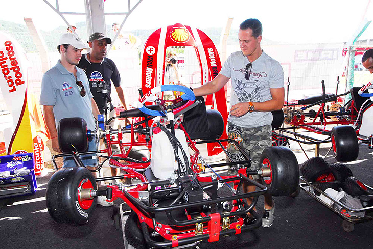 Esbanjando simpatia, Schumacher brincou na garupa da moto pilotada pelo piloto italiano Luca Badoer na pista. Nos boxes, o mecânico sorteado para cuidar do kart do piloto não escondia a sua felicidade.